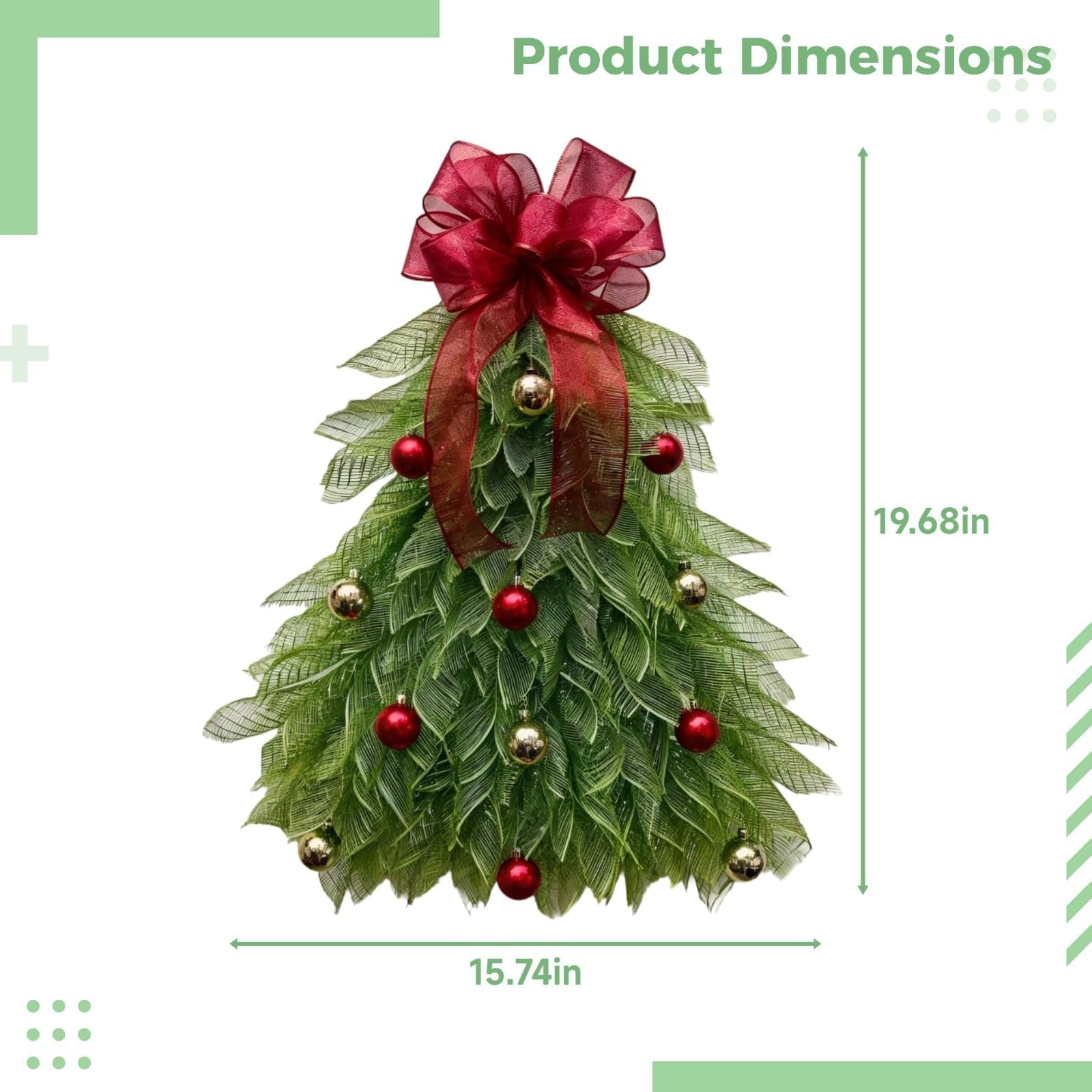 🎁🎄Inverted Christmas Tree Wreath with LED Lights – Handmade Holiday Door & Window Decoration, Unique Lighted Xmas Decor