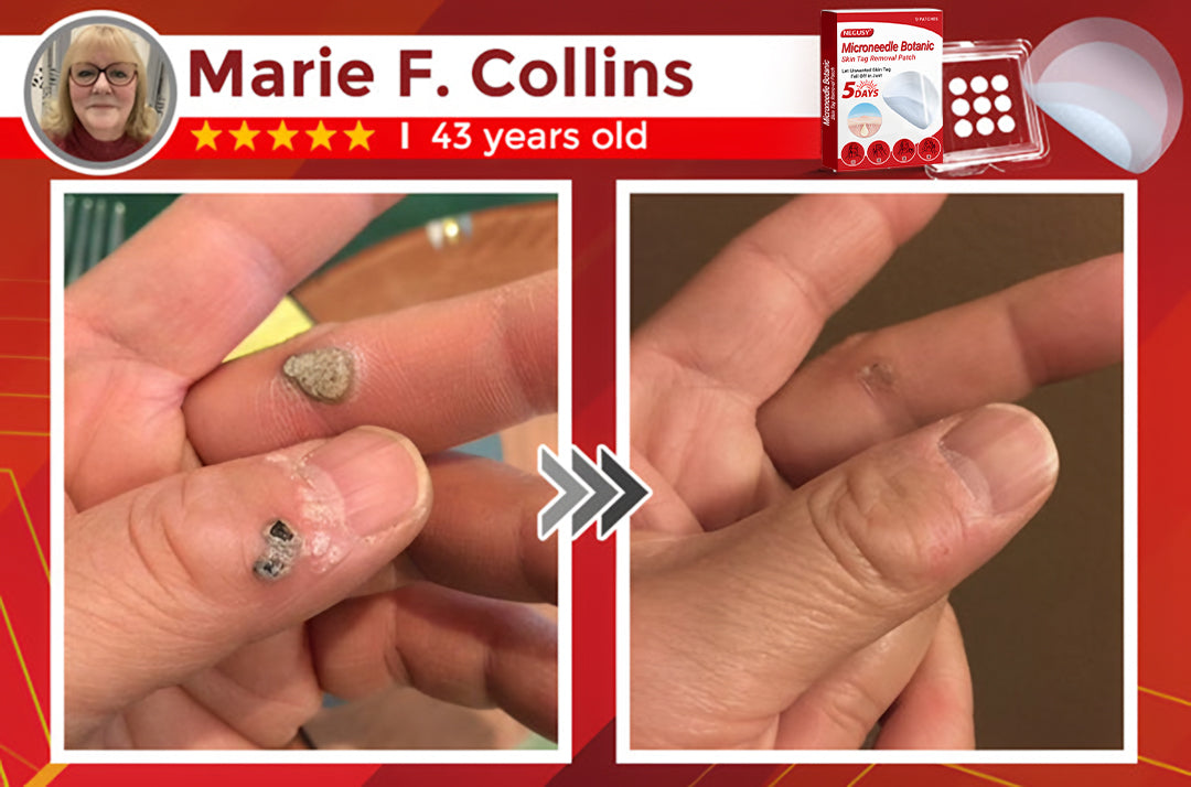 "I've observed an increase in warts on my hands. While I understand they're harmless, they still bother me. After seeing the microneedle botanical patch at the clinic, I decided to give it a shot, and the results have been remarkable. In just two days, some of the warts began to fade and eventually fell off. I'm really happy I decided to try it!" - Marie F. Collins, Kennebec, USA